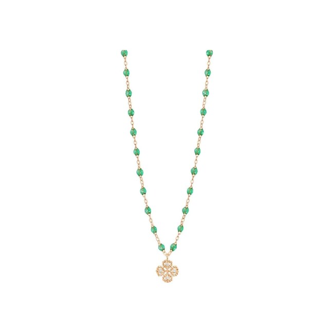 Collier Gigi Clozeau Lucky Trèfle en or rose, résine menthe et diamants, taille 42cm
