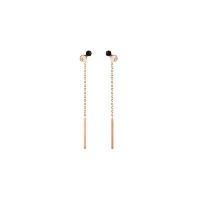 Boucles d'oreilles pendantes Gigi Clozeau en or rose, résine noire et diamants
