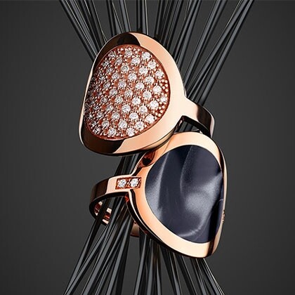 HÉLÈNA Bague Clozeau HÉLÈNA en or rose, résine bleu prusse et diamants