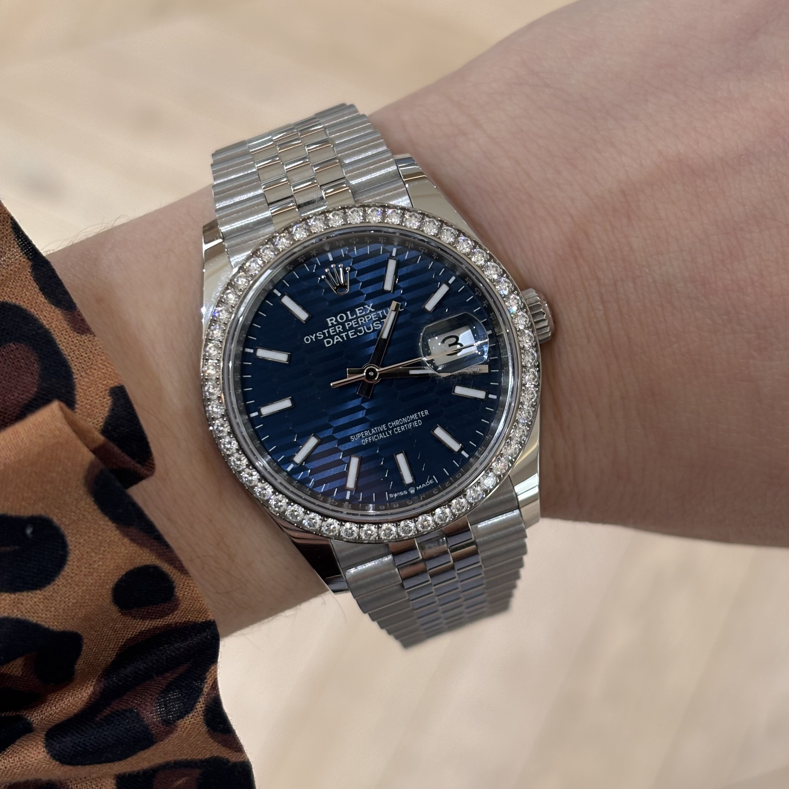 Pourquoi ce modèle séduit : la 126284RBR se distingue par sa lunette sertie de diamants, qui apporte une touche de lumière sans jamais compromettre la sobriété emblématique de la Datejust. Son calibre 3235 garantit une performance de haut niveau, tandis que son esthétique raffinée en fait une pièce idéale pour un usage quotidien comme pour les occasions spéciales.